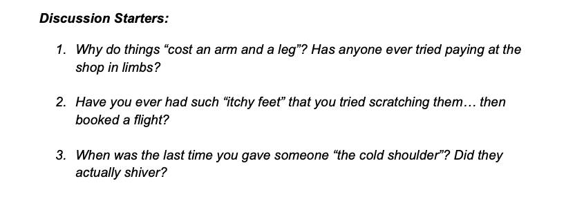 4 pages of solid “vocabulary elbow grease” (matching, gap-fills, paraphrasing), accompanied by 10 fun discussion prompts and of course a comprehensive key.